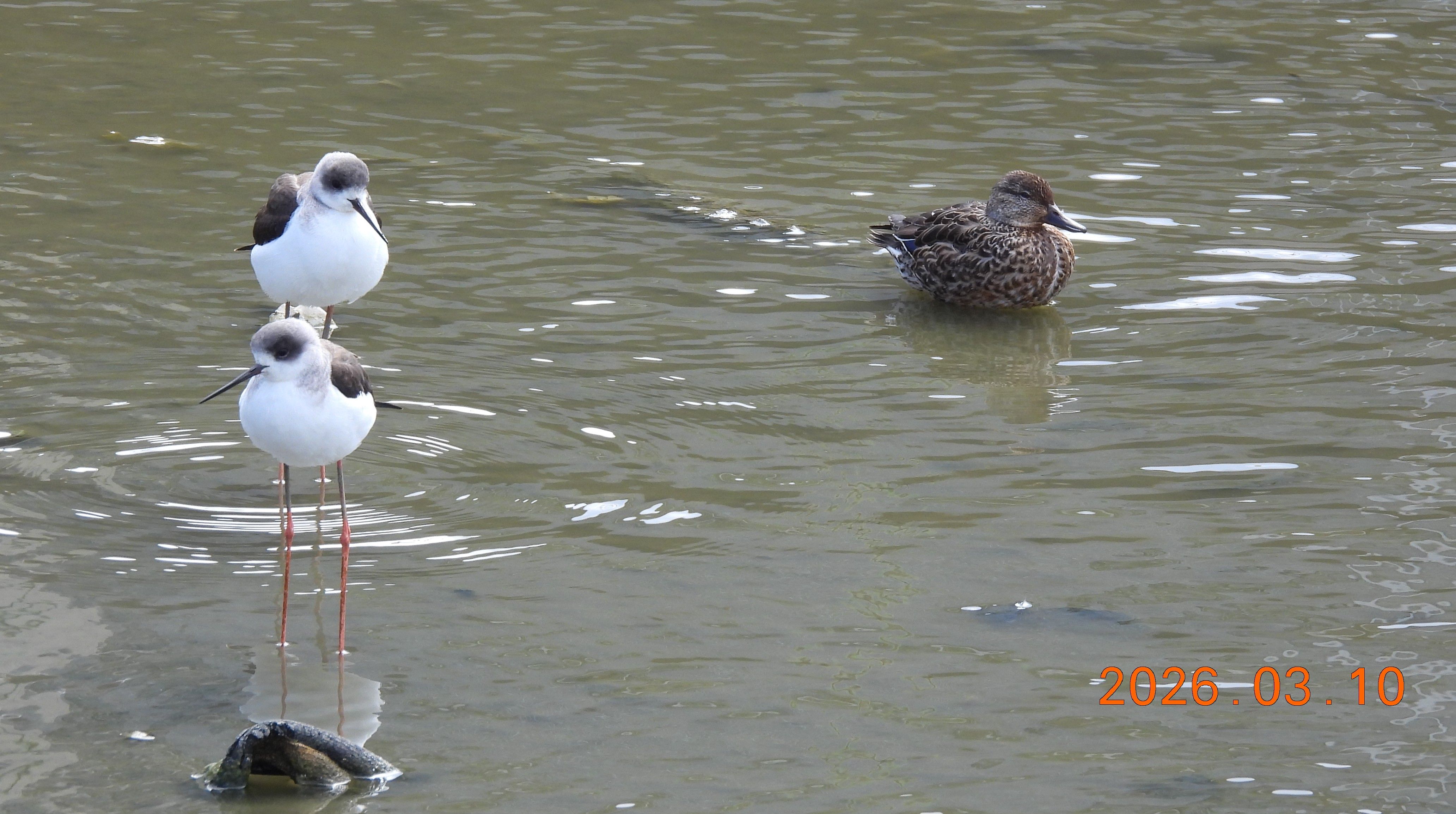 ![]() セイタカシギ3羽 大和高田市片塩中学付近の東池 2026.3.10 |